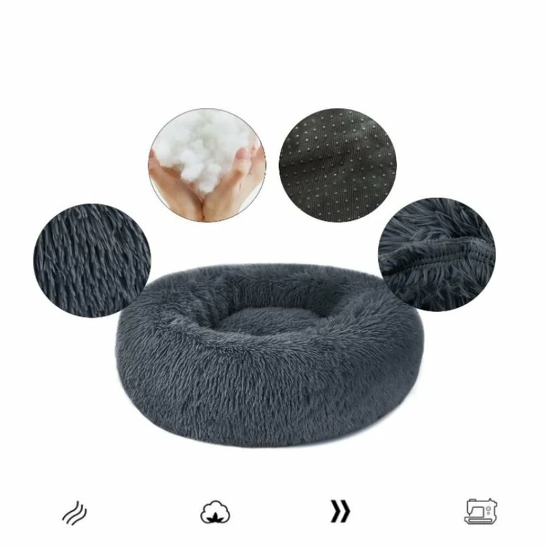 El borde elevado crea una sensación de seguridad y proporciona soporte para la cabeza y el cuello, Redondo felpa sofá hay una especie de protección y mimos Se siente como proporcionar una sensación de seguridad suficiente para la mascota, mientras que el relleno súper suave ofrece alivio de dolores en las articulaciones y los músculos y proporcionar un sueño profundo más cómodo.