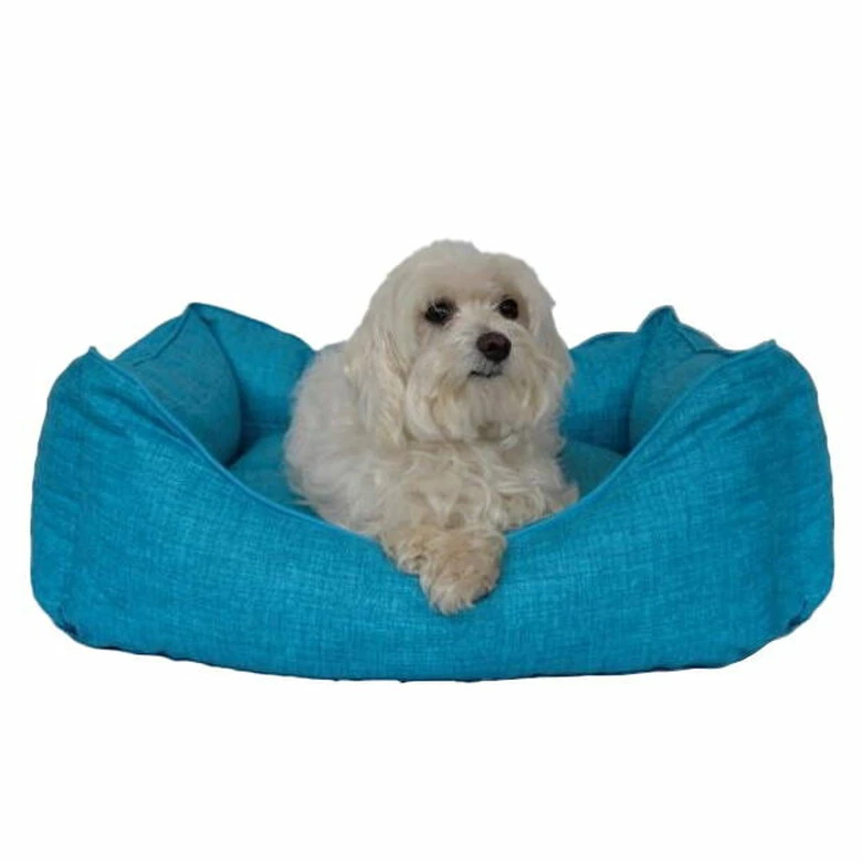 - La cama para perros Salud en forma de cuna es de color azul y la resistencia de sus tejidos permiten limpiarla con una bayeta o aspirarla sin dificultades y sin dañarla. Además, la cama es reversible para que su vida útil sea mucho más larga.