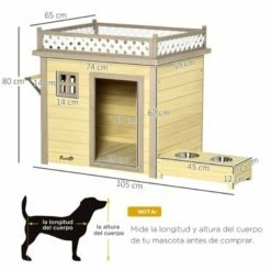 Gaun Caseta De Madera Con El Techo Plano Para Perros Color Madera 104 Cm X 70 Cm X 66 Cm