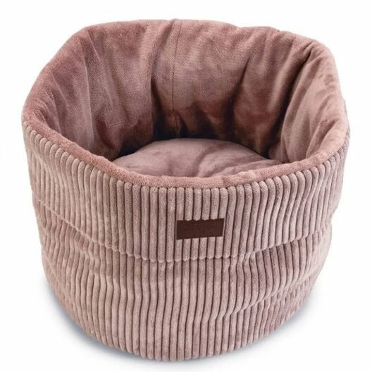 - Cama estilo cesta para gatos de con diseño de tejido estriado.