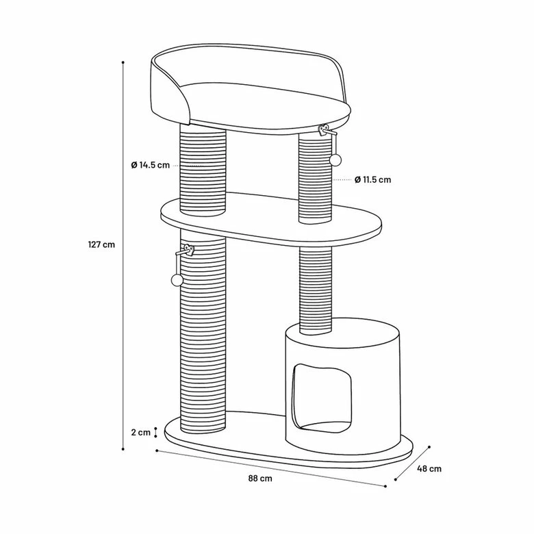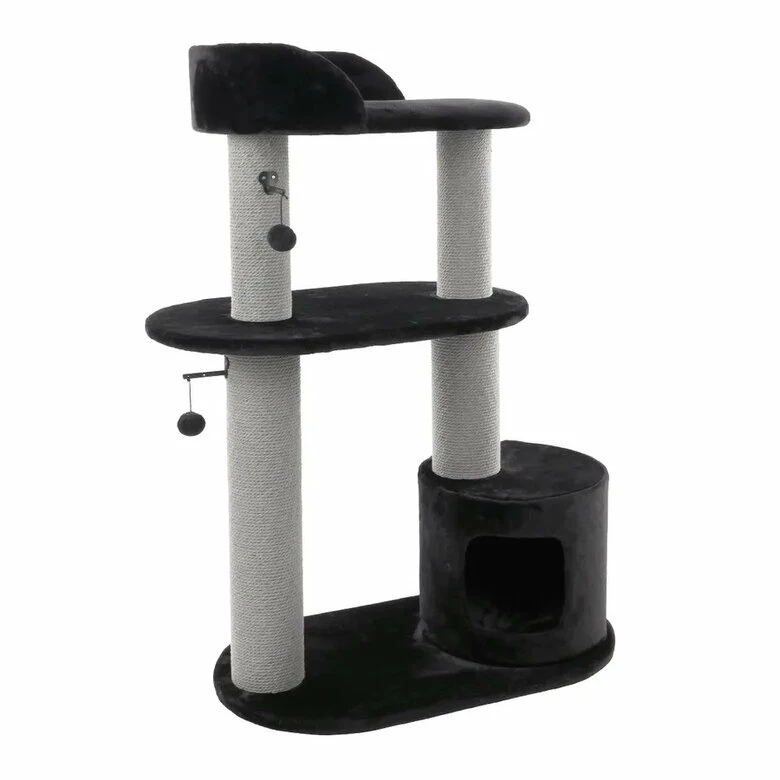 Si tienes varios felinos en casa y quieres ofrecerles un lugar donde puedan hacer todo lo que les gusta sin que dañen algún mueble de tu hogar, debes colocar en cualquier rincón el árbol rascador para gatos Brandi de Flamingo. Este multifuncional accesorio cuenta con dos niveles donde tus mascotas podrán descansar y observar todo su entorno, una cueva en la parte inferior para refugiarse sin que nadie moleste y unas pelotas colgantes para que salten e intenten atraparlas, de esta forma, se mantendrán siempre activos y en constante movimiento.