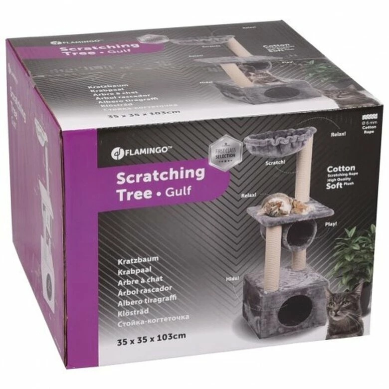 El árbol rascador para gatos del Golfo de FLAMINGO es una casa para gatos divertida y práctica con una hamaca suave en la parte superior, que le ofrecerá a tu amigo furioso innumerables horas de diversión