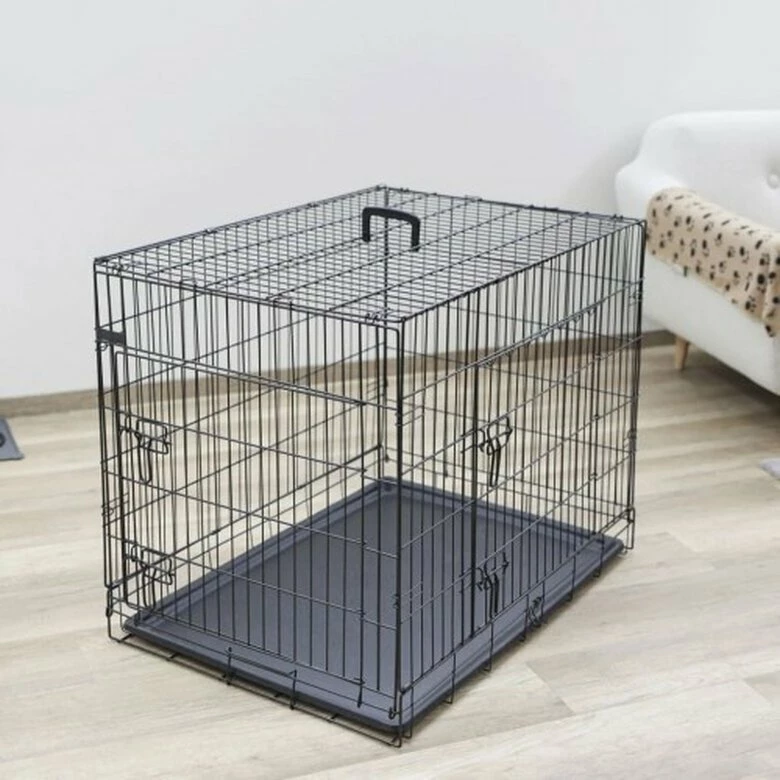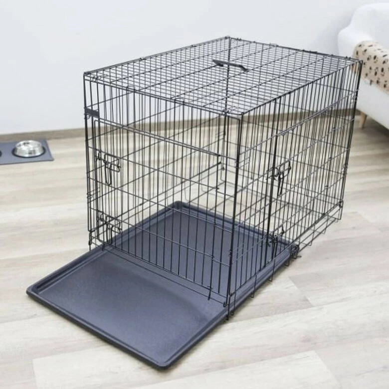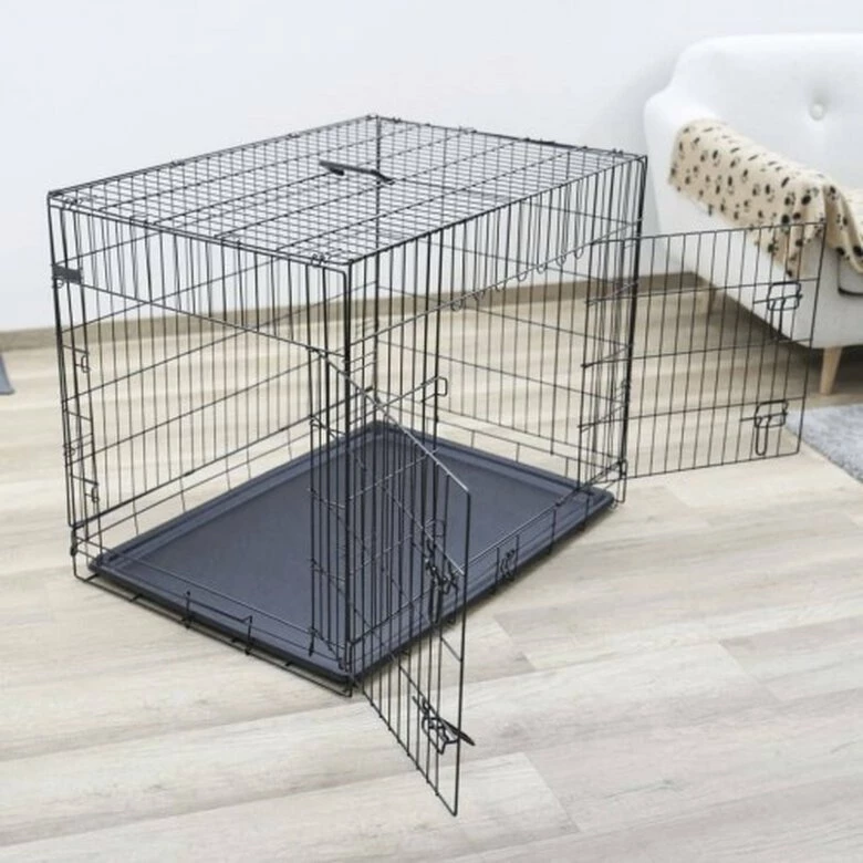 La jaula para perros cuenta con dos puertas de Kerbl es una robusta jaula para mascotas perfecta para exhibiciones, hoteles para mascotas o casas de vacaciones. Tu animal dormirá aquí de forma cómoda y segura. La jaula para perros es plegable, fácil de montar y desmontar. Además, la jaula para perros tiene una base de plástico extraíble para una fácil limpieza.