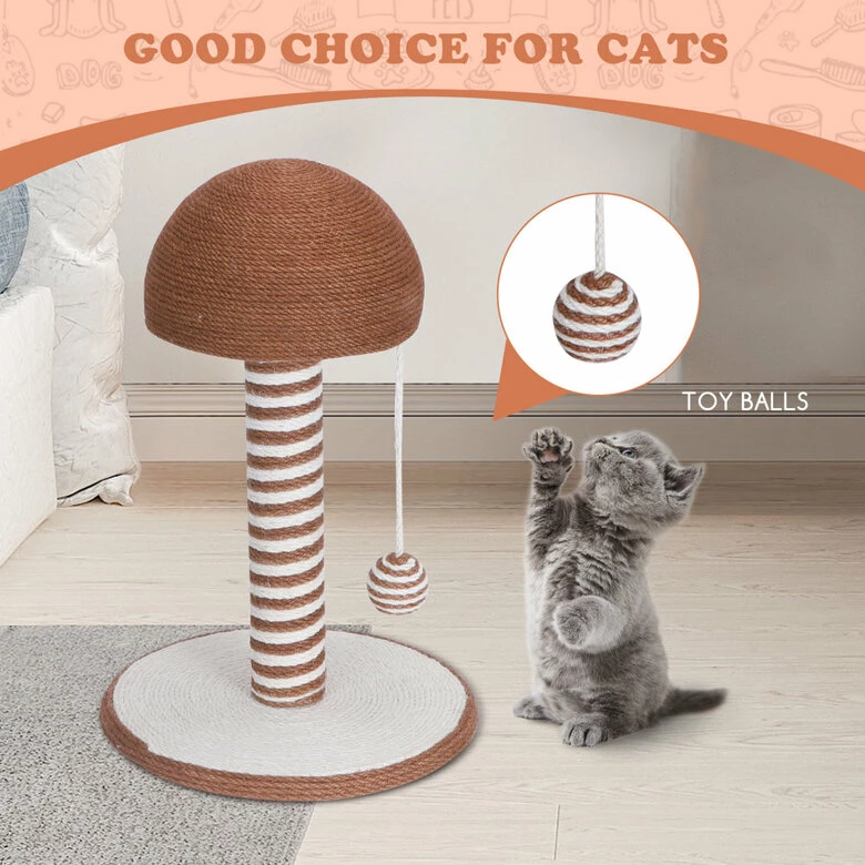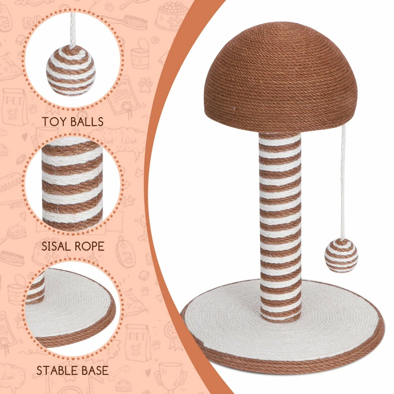 ????Fibra de sisal natural – Este poste rascador para gatos está hecho de materiales seguros y ecológicos. La superficie está envuelta con una fibra de sisal natural para proporcionar un espacio de rascado seguro para usted y su minino.