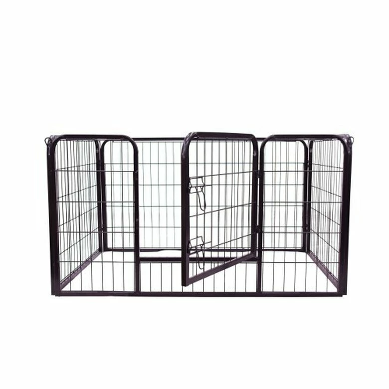 Este Parque – jaula es ideal para interior y exterior. Es muy seguro, con tubo rectangular para mayor estabilidad. Rejillas en cuadricula proporcionan una optima ventilacion, amplia puerta para la entrada y salida fácil y cómoda de mascotas, y el doble seguro garantiza que tu mascota no salga libremente.