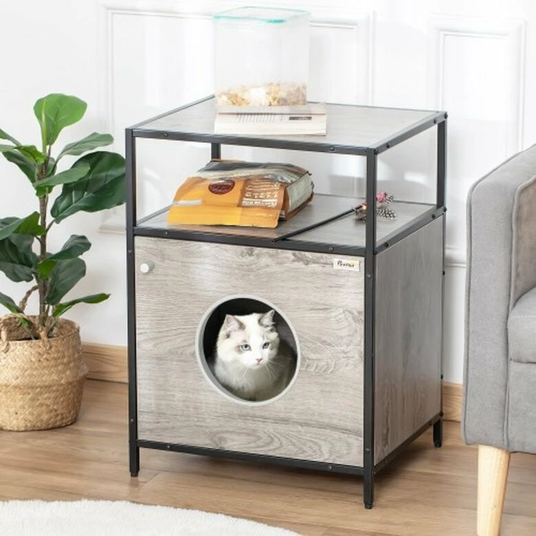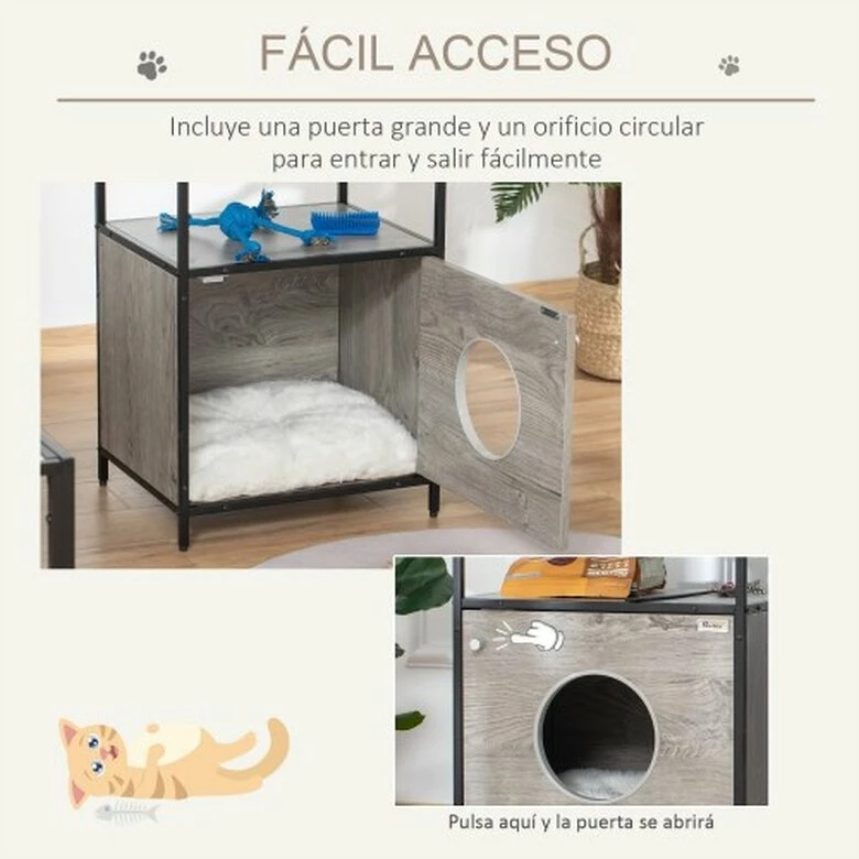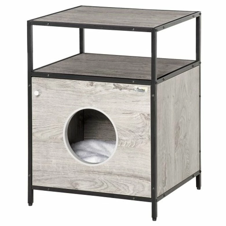 ¿Has visto este combo de PawHut? Por un lado, es una cueva para gatos y por el otro una mesa auxiliar con espacio de almacenaje para que en poco espacio puedas tener tu libro a mano en el comedor, el mando a distancia, etc. Con estructura de acero y melamina de madera es resistente y está equipada con una puerta grande con un orificio para que entren los gatos. En el interior hay una cómoda almohada de felpa, para proporcionar el máximo confort a tu mascota. Ideal para aprovechar bien el espacio y que cada cosa tenga su lugar.
