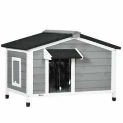 Caseta para mascotas diseñada para estar a la intemperie con techo de tela asfáltica y resistente al agua