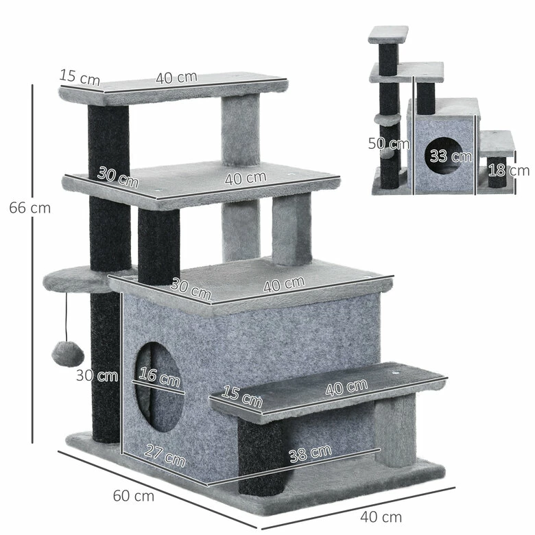 – Altura ajustable, peldaños para gatos de 3/4 pasos para gatos mayores.
