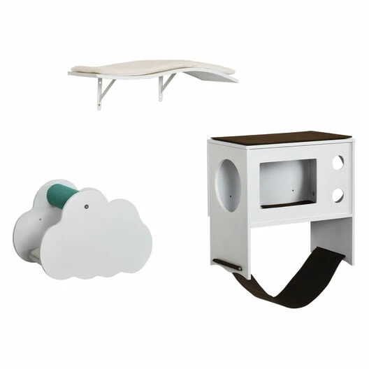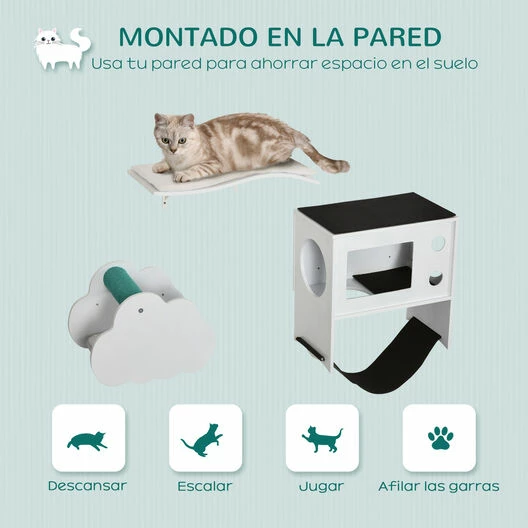 Si tu gato es un integrante más de tu casa, seguro que te encantará que tenga un espacio fijo para divertirse, trepar y cubrir necesidades como la de afilar sus garras. Por eso te presentamos este set colgante para gatos de PawHut. El poste de rascado favorece el afilado de las garras de tu gato evitando que dañe tus muebles – La espaciosa cueva con hamaca brinda un espacio cómodo para que tu mascota descanse – Fabricado en MDF para ofrecer una gran resistencia y estabilidad – Los tonos de colores neutros combinarán fácilmente con la decoración existente de tu hogar – Requiere montaje