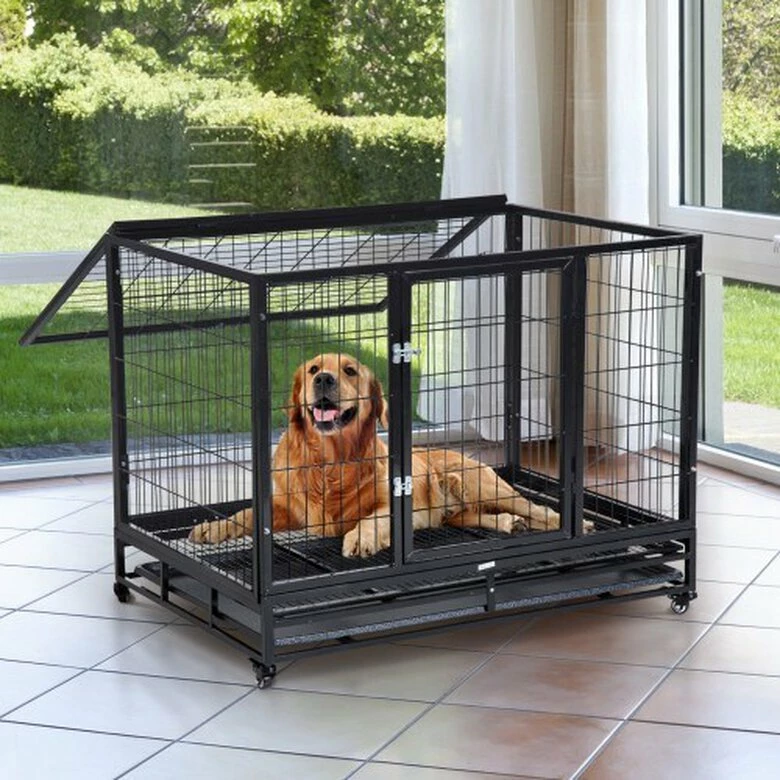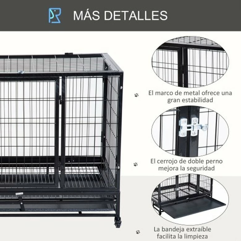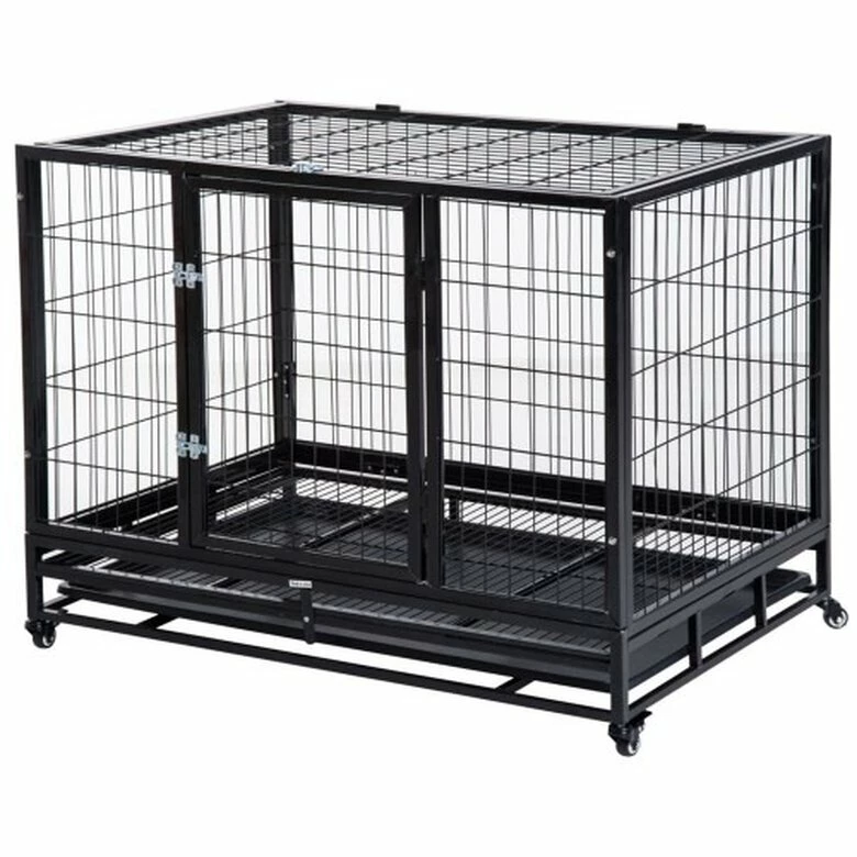 Si estás buscando una grande y amplia jaula para tu perro esta es tu oportunidad de conseguir la mejor. Esta fantástica jaula marca Pawhut con una estructura muy robusta es perfecta tanto para cachorros como para perros adultos. Es perfecta tanto para dentro como fuera de casa. Esta jaula está hecha de tubos de acero con revestimiento en polvo, alta resistencia que proporcionan mayor seguridad.