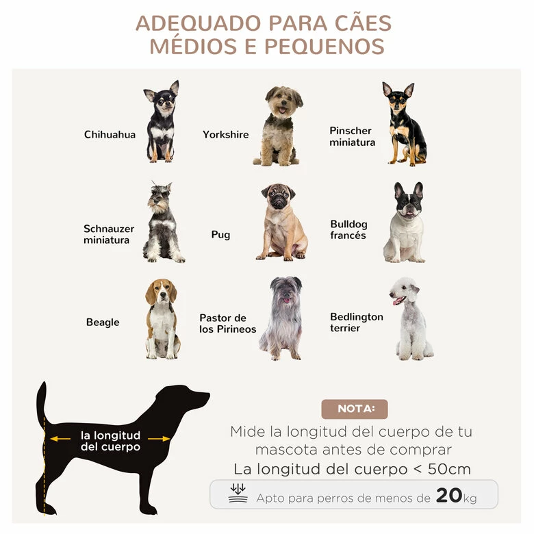 Adecuado para perros medianos de hasta 20 kg y máximo 50 cm de longitud corporal.