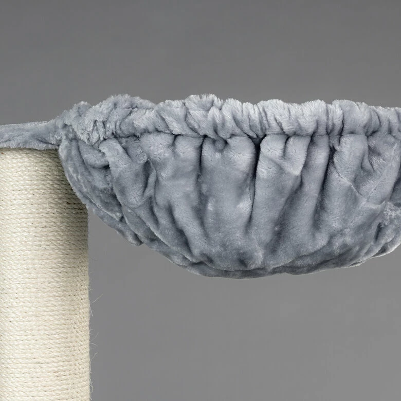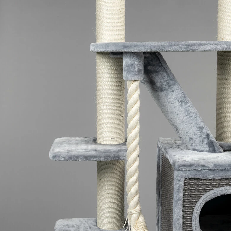 - Los polos de sisal son de 12 cm de diámetro y el sisal natural de 6 mm de espesor está pegado a los polos. (Si su gato raya la cuerda de sisal, la cuerda no «rueda» hacia abajo).