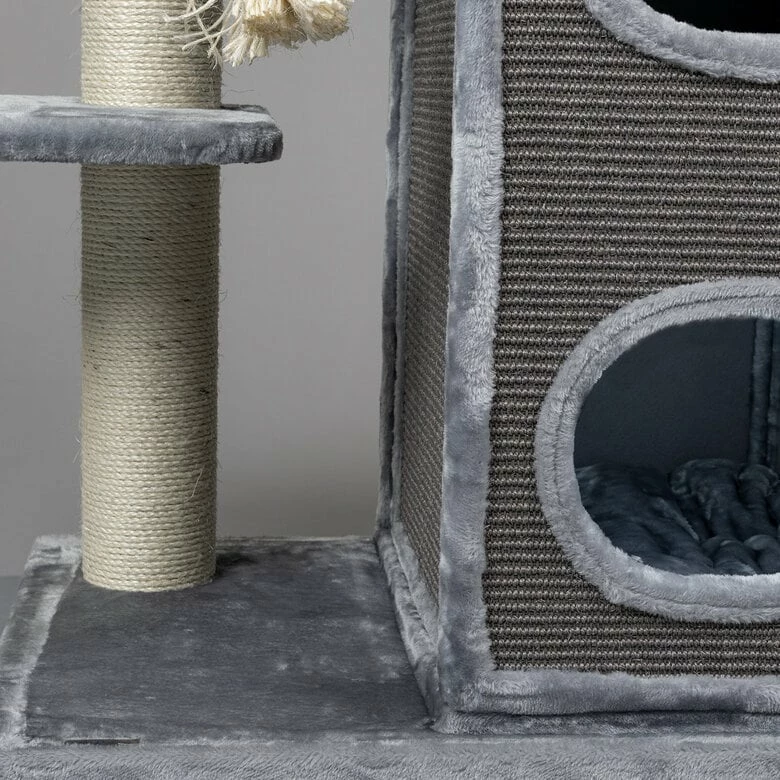 En este magnífico rascador tu gato podrá pasar horas y horas de diversión, y no solo eso, sino que cuando haya jugado sufiente podrá descansar cuanto quiera ya que este rascador cuenta con diferentes zonas de descansos diseñadas especialmente para las necesidades de los gatos.