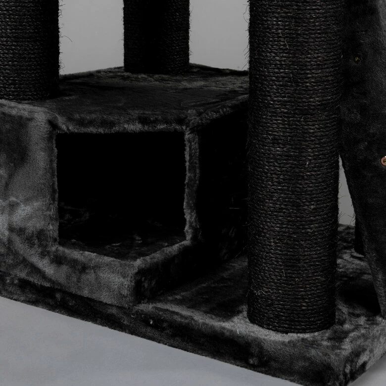 - Rascador fuerte con polos de sisal de 12 cm de diámetro extra gruesos.