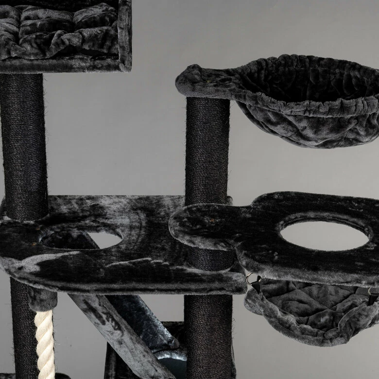 Con este gran árbol rascador podrán descansar y jugar al mismo tiempo varios gatos. Gracias a su construcción robusta y estable soporta gatos de razas grandes, siendo segura y sin moverse, ¡podrán dar rienda suelta la diversión sin preocuparse! Muy fácil de montar, solo te llevará unos minutos.