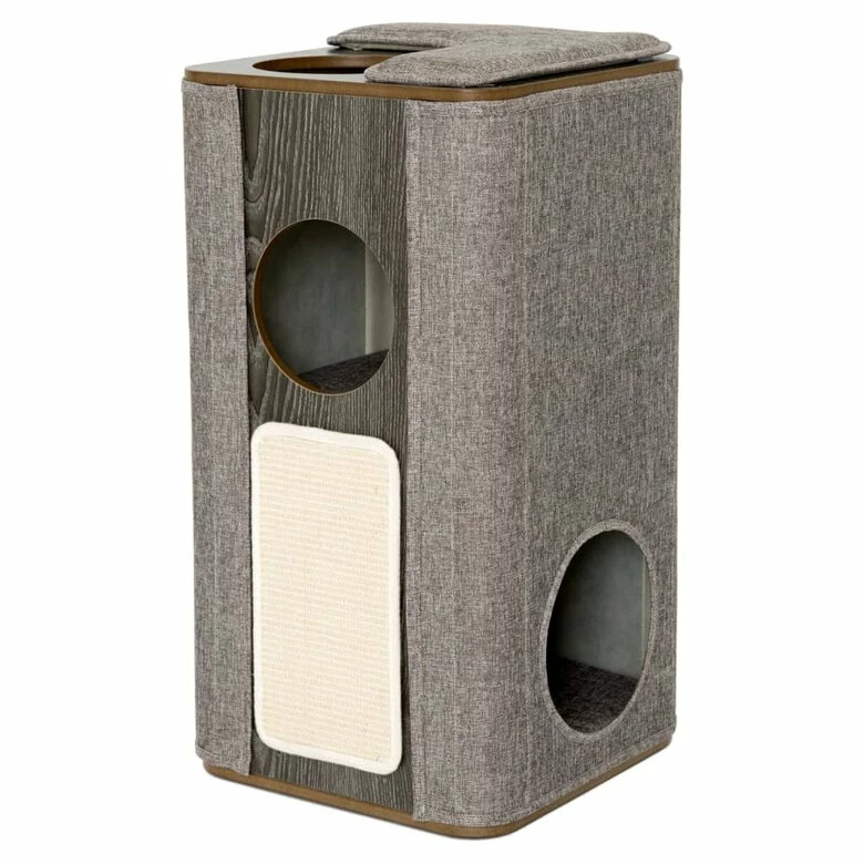 Este rascador para gatos con torre Molly de Jack and Vanilla brinda a tus gatos un excelente lugar para rascarse, trepar, posarse, esconderse y descansar. Estable y seguro: el diseño cuboide del rascador para gatos garantiza que la casa del gato tenga una mayor estabilidad y capacidad de carga.Diseño de orificio redondo: el diseño de 2 orificios redondos de la torre para gatos es conveniente para que los gatos entren y salgan.Superficie para rascar: El mueble para gatos cuenta con una superficie para rascar en el lateral, lo que permite a tus amigos felinos afilar sus uñas y proporciona una salida saludable para su instinto de rascar.