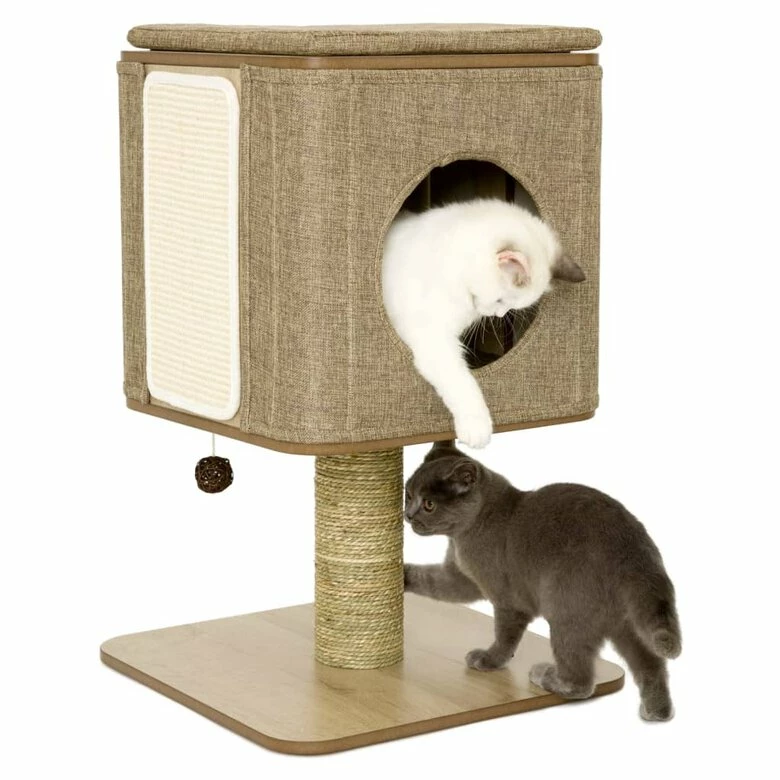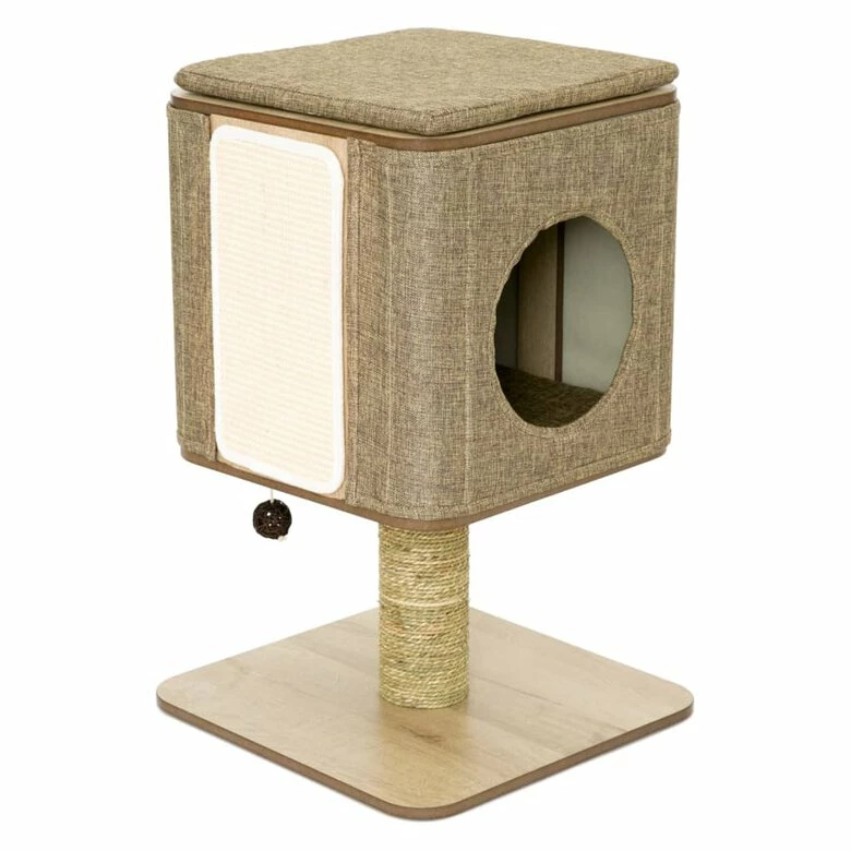 Este rascador para gatos con soporte Molly de Jack and Vanilla brinda a tus gatos un excelente lugar para rascarse, trepar, posarse, esconderse y descansar.Estable y seguro: El rascador para gatos incluye una base cuadrada. El diseño anti-dumping y el material de madera aseguran que la torre para gatos con poste rascador tenga mayor resistencia a la carga y estabilidad.Diseño de orificio redondo: el diseño de orificio redondo de la torre para gatos es conveniente para que los gatos entren y salgan.Combina con el interior de la casa: además, es una hermosa adición a cualquier interior, con su diseño moderno.