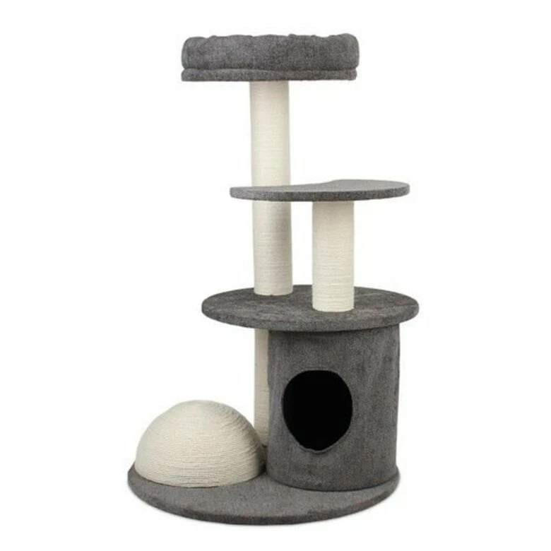Todo lo que necesita está en esta torre que fabrica Arquivet: cama, lugar de recreo, parque de juegos y rascador, especialmente diseñado con varios niveles acolchados con felpa y cuevas con las que mantenerse activo y descansar.