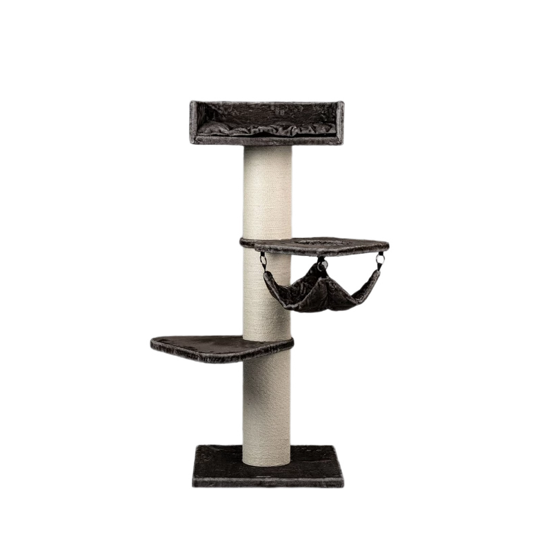 El rascador Royalty Crown es un rascador muy estable, con sus polos de sisal de 20 cm de diámetro y una placa de fondo extra robusto de 60 cm x 60 cm y 4 cm de espesor.