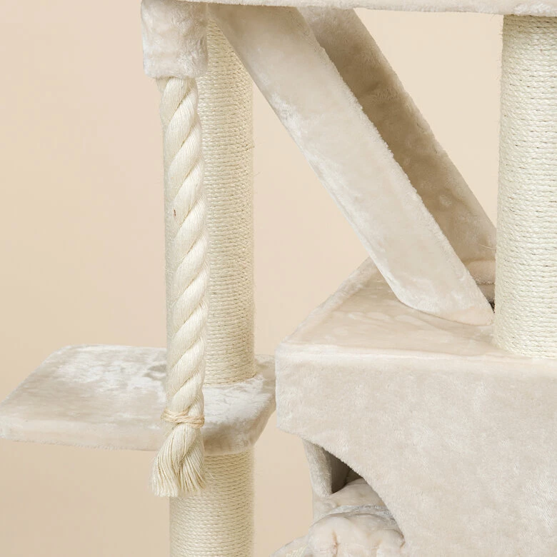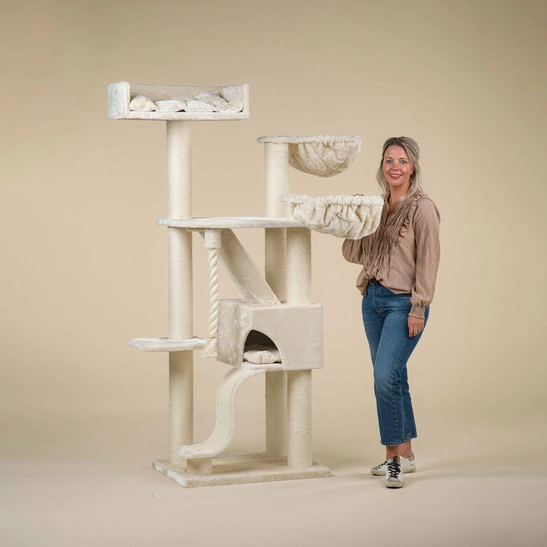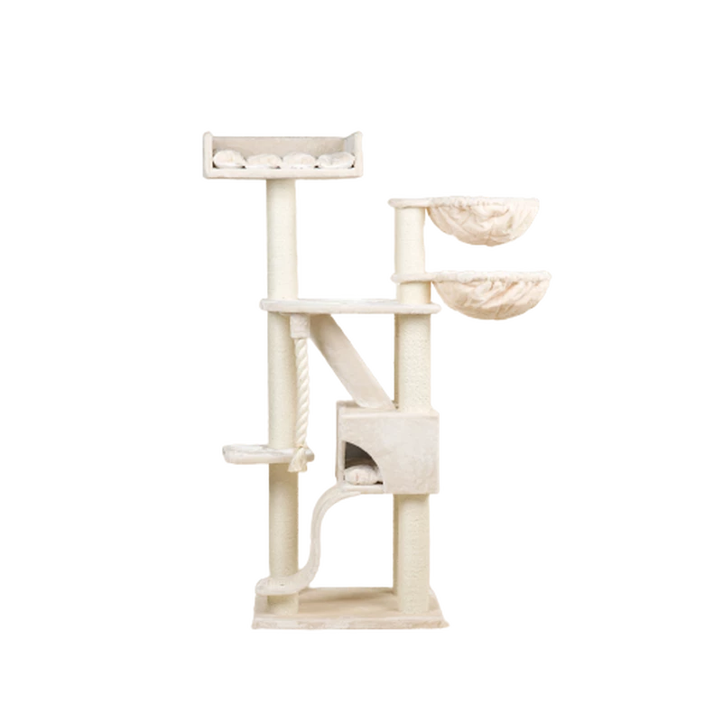 Con este gran árbol rascador podrán descansar y jugar al mismo tiempo varios gatos. Gracias a su construcción robusta y estable soporta gatos de razas grandes, siendo segura y sin moverse, ¡podrán dar rienda suelta la diversión sin preocuparse! Muy fácil de montar, solo te llevará unos minutos.