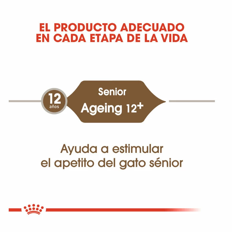 Royal Canin Feline Ageing +12 es un alimento que ayuda a cuidar las articulaciones de su mascota y a mantener su peso óptimo, estimulando su apetito caprichoso gracias a una croqueta innovadora con dos texturas.
