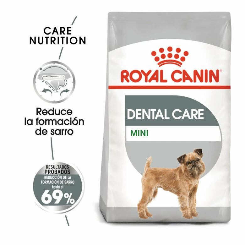 Con el pienso para perros Royal Canin Dental Care Mini previenes la formación de sarro para que los dientes de tu mascota estén siempre limpios.