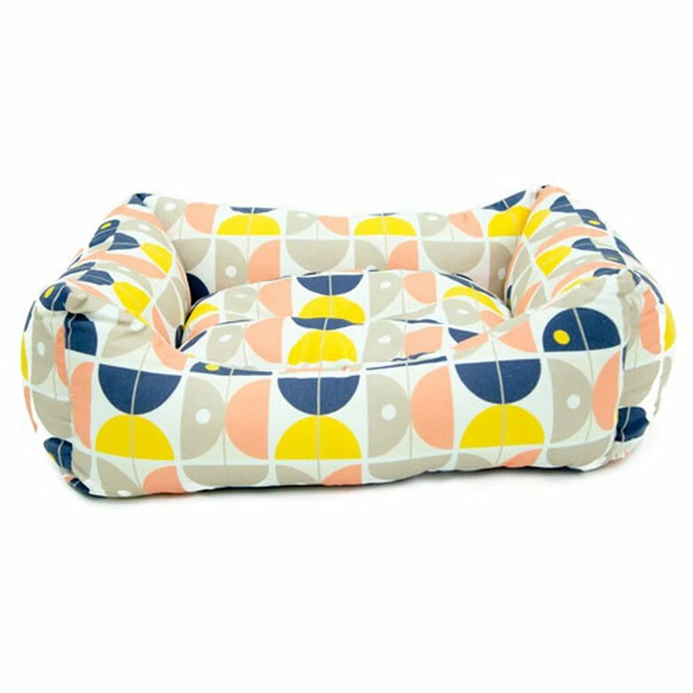 Pero esta cuna tiene mucho más. Porque su forma rectangular está recubierta por una tela estampada de colores de lo más divertido. Solo necesitas colocarla en el rincón favorito de tu perro y listo. Además, si la funda del colchón se mancha puedes quitarla y lavarla en la lavadora.