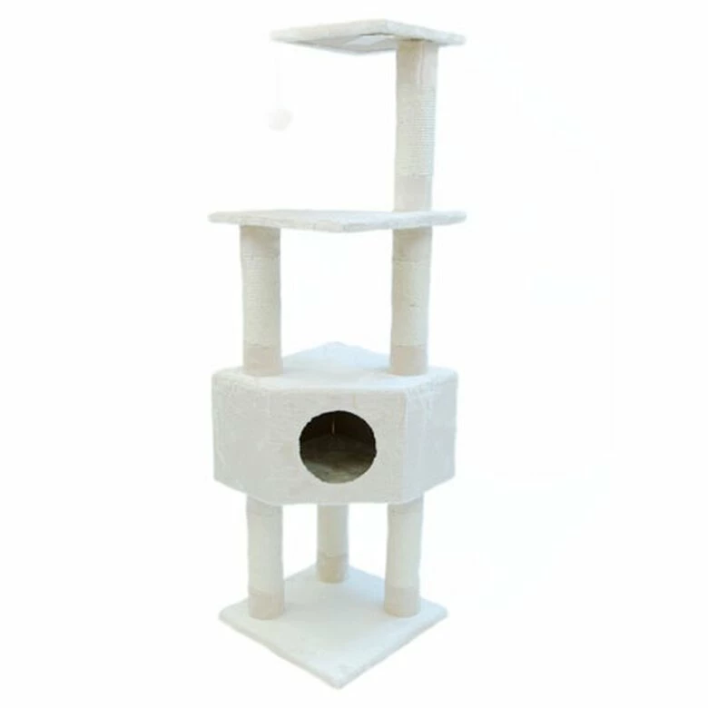 Es de un discreto color beige, ideal para colocar en la esquina del salón o de una habitación. Si la pones cerca de una ventana, a tu gato le encantará sentarse en lo alto a observas qué pasa en el exterior.