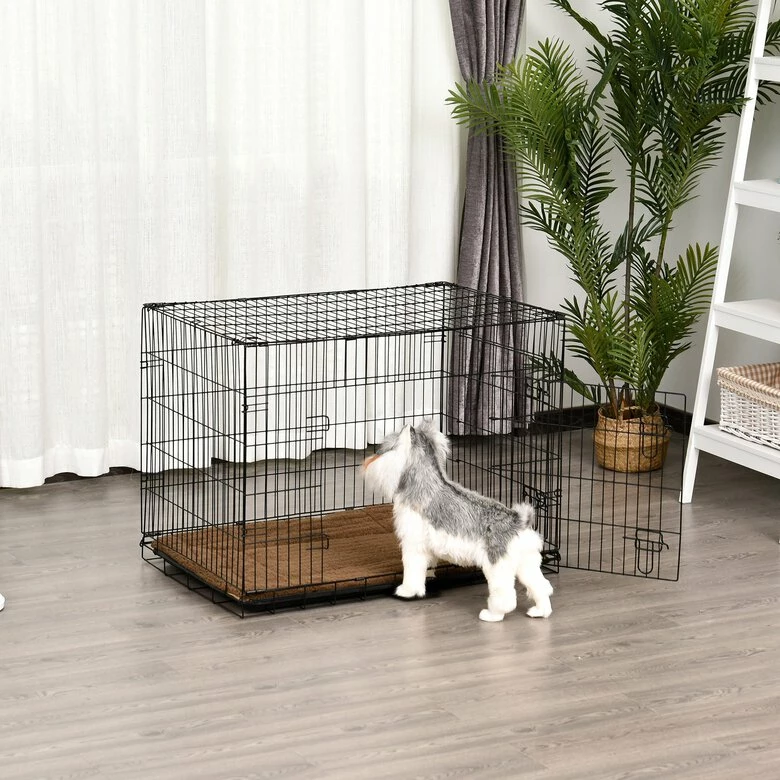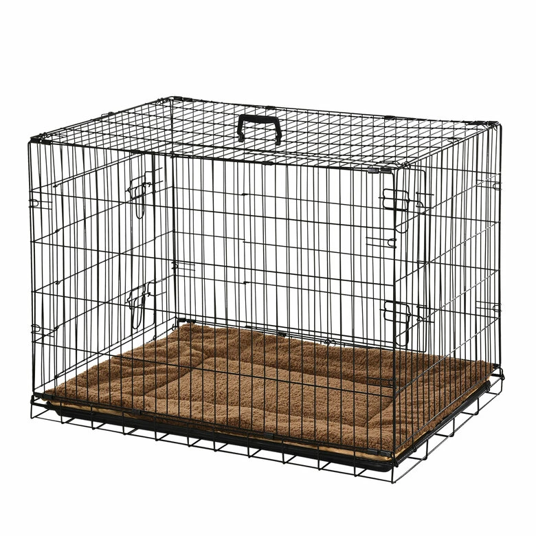 Jaula para perros y mascotas, jaulas ideales para transportar con seguridad a su perro en el coche, tren…Transportin con puertas con cerradura de seguridad con cierre simple y rapido y apertura rapida de la caja de transporte. Transportin perro con puerta grande en el frontal de la jaula para comoda entrada y salida del perro.