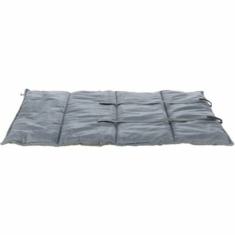 Esta cálida y funcional manta está pensada para que tu mascota no pase frío cuando se vayan de viaje o de paseo. Gracias a su ligereza es fácil de transportar y ocupa poco espacio, haciendo que puedas llevarla donde quieras con tan sólo doblarla. Tiene una cómoda asa para facilitar aún más su transporte. Su tejido de poliéster es apto para perros sensibles o alérgicos, y tiene 2 cm de relleno de fibra de poliéster.