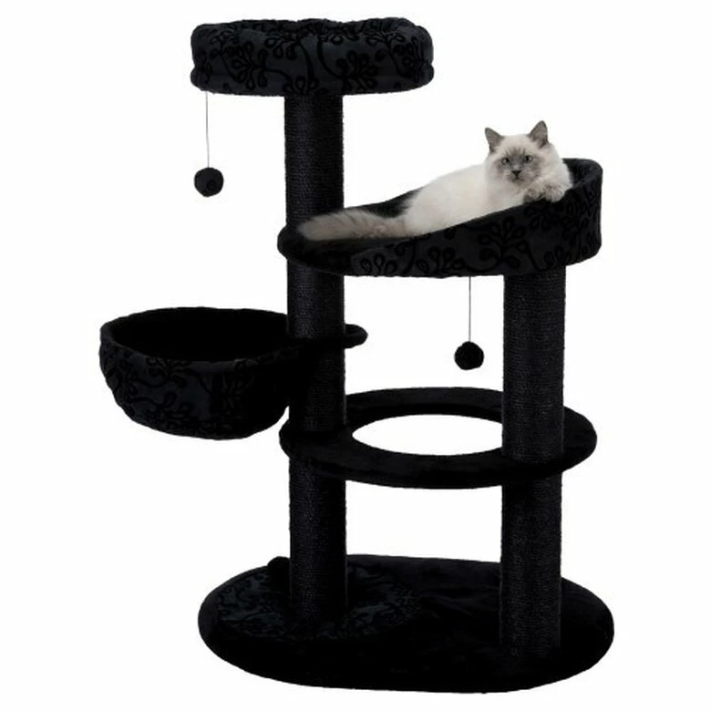 El poste rascador para gatos Filippo tiene sus postes cubiertos de cuerda de sisal en tono negro para que tu gato pueda afilarse las uñas cada vez que lo necesite. Pero además cuenta con zonas de descanso a diferentes alturas para que pueda observar lo que ocurre en la estancia o echarse una siestecita. No le faltará de nada.