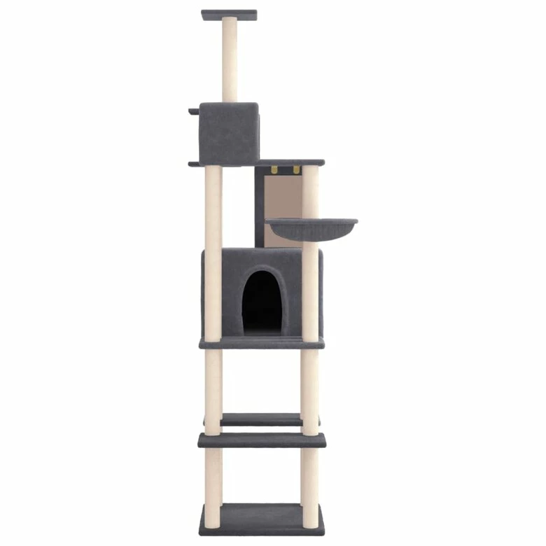 ¡Con este rascador para gatos, tus peludos amigos podrán disfrutar del lujo! Tus gatos disfrutarán arañando, trepando, posándose, escondiéndose y descansando en él. Torre para gatos todo en uno: La torre para rascar de gatos con varios niveles brinda a tu gato un lugar divertido y compacto para jugar, hacer ejercicio y una casa acogedora para echar una buena siesta. Cuenta con una escalera, un cesto, 2 casas y plataformas.Felpa cómoda: La cubierta de felpa esponjosa y agradable a la piel permite que tus amigos felinos jueguen con comodidad.Cuerda de sisal duradera: El poste de este centro de actividades para gatos está enrollado con una cuerda de sisal natural, lo que brinda a los gatos una salida saludable para rascarse. Nota: La lona impermeable no está incluida. Cada producto viene con un manual de montaje en la caja para facilitar el montaje.
