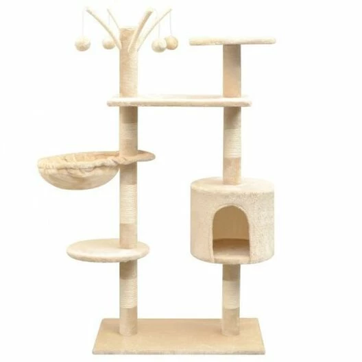 Con este rascador para gatos de alta calidad, sus gatos podrán rascarse, posarse, esconderse, trepar y relajarse cuando quieran. Gracias a lo cual, estarán mucho más relajados y tranquilos, sin estrés ni perturbaciones siendo así más felices. Este rascador es un producto que se adapta a cualquier decoración. El poste alfombrado está envuelto en una cuerda de sisal. Incluye dos acogedoras camas y un iglú para que su gato pueda echarse la siesta y descansar.