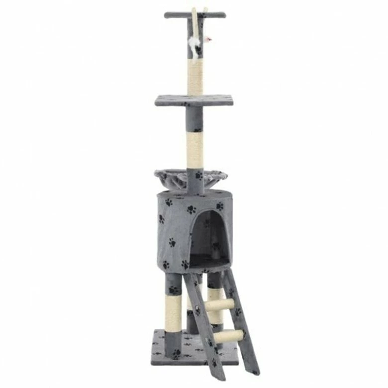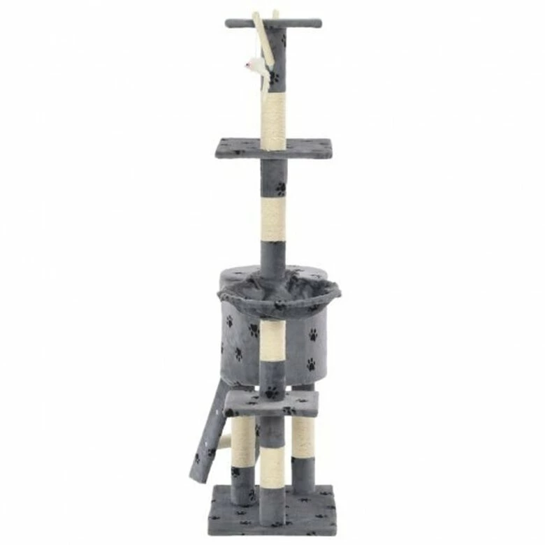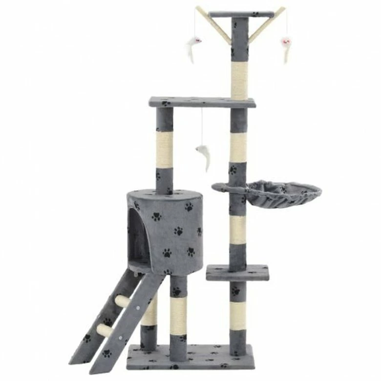 Con este rascador para gatos de alta calidad, sus gatos podrán rascarse, posarse, esconderse, trepar y relajarse cuando quieran. Gracias a lo cual, estarán mucho más relajados y tranquilos, sin estrés ni perturbaciones siendo así más felices. Este rascador es un producto que se adapta a cualquier decoración. El poste alfombrado está envuelto en una cuerda de sisal. Incluye plataformas adiferentes niveles, escaleras y postes para que los gatos disfruten.
