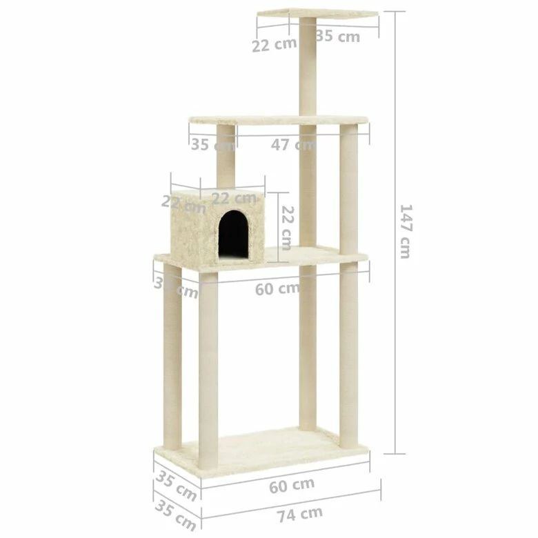 Este rascador es el refugio perfecto para que sus gatos rasquen, trepen, se sienten, se escondan y descansen, en definitiva, un lugar en el que puedan estirarse, hacer ejercicio y divertirse. Es especialmente útil para los fríos meses de invierno cuando pasan más tiempo en el interior. Tus amigos peludos pueden afilar sus garras en los postes rascadores envueltos en cuerda de sisal, dando una salida saludable a su instinto rascador. De esta forma podrás evitar que te arañen los muebles de la casa, sobre todo los sofás.