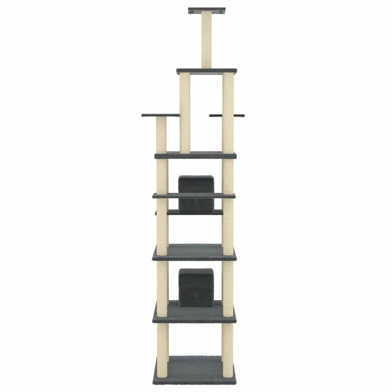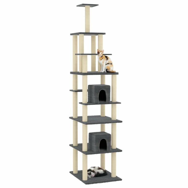 ¡Con este rascador para gatos, tus peludos amigos podrán disfrutar del lujo! Tus gatos disfrutarán arañando, trepando, posándose, escondiéndose y descansando en él. Torre para gatos todo en uno: La torre rascadora para gatos de varios niveles le ofrece a tu gato un lugar divertido y compacto para jugar, hacer ejercicio y una casita cálida para una buena siesta. Los tableros de partículas hacen de esta torre para gatos un mueble respetuosa con el medio ambiente. Además, la felpa es esponjosa y amigable con la piel, lo que le permite a tus amigos felinos jugar muy cómodos. Los postes de este centro de actividades para gatos están enrollados con cuerda de sisal natural, lo que proporciona a los gatos una opción saludable para rascar.